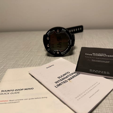⌚ Suunto Zoop Novo – finsk dykkercomputer, aldrig taget i brug. Viser dybde, dykketid, dekostop og meget mere. Batteriet er ved at være fladt, men ellers i perfekt stand. Nypris ca. 1600 kr.