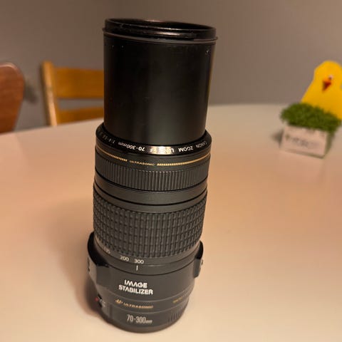 Canon EF 70-300, 1:4-5.6 IS USM. I rigtig god stand. Bruger ikke Fiks Færdig.