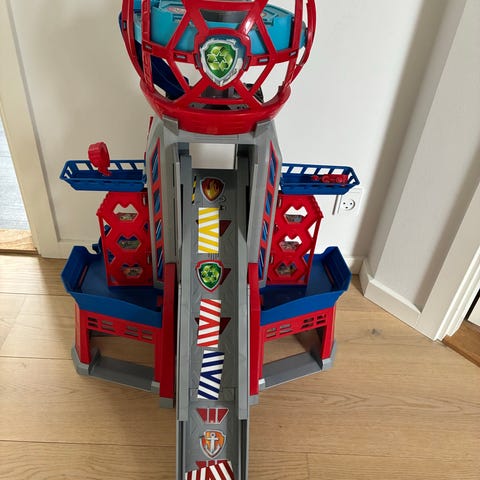 Paw Patrol legetøjssæt i plast med farverne rød, blå, gul og grå. Sættet består af en større base med udfoldelige sider, der kan bruges som legestation til køretøjer eller figurer fra Paw Patrol-universet. Egnet til leg indendørs på gulv eller bord. Velegnet til børn, der kan lide rollespil og fantasileg med Paw Patrol-figurer og -køretøjer.