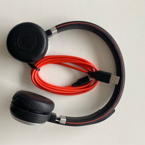 Jabra Evolve 65 headset trådløs. Professionelt trådløst headset egnet til opkald og musik. Headsettet leveres i original emballage med opladningsstander. Det er designet til brug med computer via Bluetooth eller USB-dongle (afhænger af medfølgende tilbehør). Velegnet til kontorbrug, hjemmearbejde og online møder, hvor der er behov for et enkelt over-ear headset med mikrofonbom.
