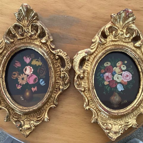 To styk med guldbelagt træramme. De trænger til en rensning og rammerne bør nok istandsættes.