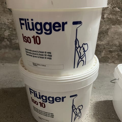 Flügger Iso 5 maling i spand. Velegnet til indendørs brug, hvor der ønskes en dækkende overflade. Produktet leveres i original Flügger-spand med hank og låg. Yderligere oplysninger om forbrug, påføring og tørretid fremgår af teksten på spanden.