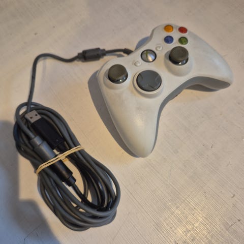 Kablet controller til Xbox 360 I hvid - den er testet og virker, men er slidt.