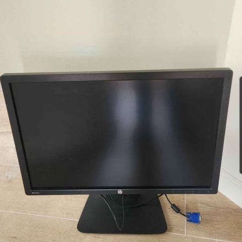 HP skærm på 24 tommer i hvid. Skærmen har slankt design med smal ramme og rektangulær fod. På bagsiden er der tilslutninger til blandt andet strøm og videoindgang (f.eks. HDMI/VGA, jf. billeder). Velegnet som computerskærm til kontorbrug, studie eller generel hjemmebrug.
