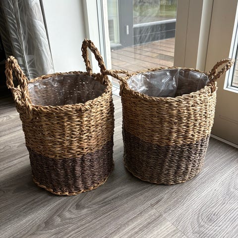 Altan plantekurve i flet med metal-kroge til ophæng på altanrækværk.
