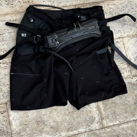ION Axis trapez i størrelse M, passer til taljemål ca. 30-33 inch. Trapezen er sort med gule detaljer og har polstret rygstøtte samt justerbare remme. Velegnet til kitesurfing eller windsurfing, hvor der er behov for støtte omkring lænd og hofter. Udstyret med metal-krog og forstærkninger til fastgørelse af kite- eller windsurf-sejl.