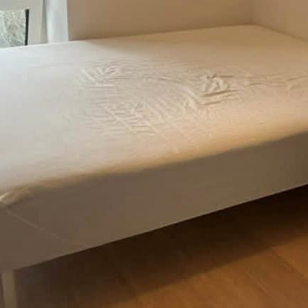 Jysk seng i mørkegrå farve. Sengen har polstret ramme og står på runde metalben. 140 cm. Passer til brug i soveværelse, gæsteværelse eller som ekstra seng. Madrassen fremstår med glat, mørkegråt betræk og uden huller.
