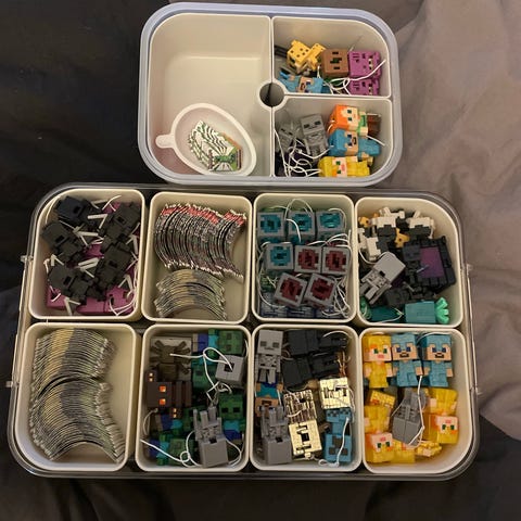 Minecraft figur-sæt legetøjsfigurer med dyr og klodser. Sættet indeholder flere karakterfigurer, forskellige dyr samt blokke og genstande inspireret af spillets univers. Figurerne er små plastfigurer i forskellige farver med spillets karakteristiske kantede design. Velegnet som samlerfigurer eller til leg for børn, der kender Minecraft-universet.