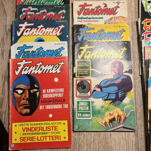 Forskellige numre og forsider med klassiske Fantomet-historier. Tegneserierne er i hæfteformat med farveforsider. Velegnet til samlere af Fantomet og tegneserier generelt.