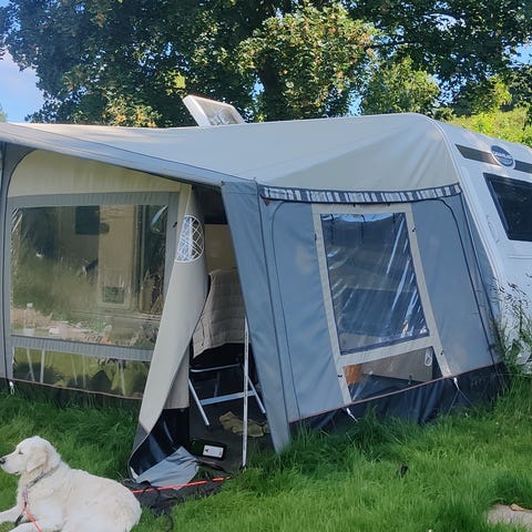 Pænt stort og velholdt fortelt, 650x400 cm. Med megastænger og termoloft. Fra 2020. Syningen ved døren er gået op (se billed). Røgfrit