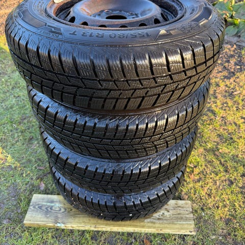 Firestone dæk monteret på stålfælge.