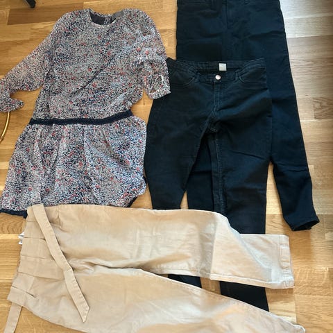 2 par veleurbuks og bomuldsbluse str. 6 mdr. pr. stk.kr 20,-