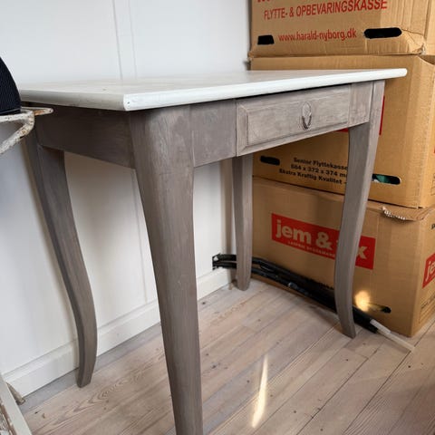 Sælger dette smarte og pladsbesparende bord. Det har en praktisk sideplade (klap), der nemt kan slås op eller ned alt efter behov. Det er perfekt til en lille lejlighed, et kollegieværelse eller som en kompakt arbejdsstation.