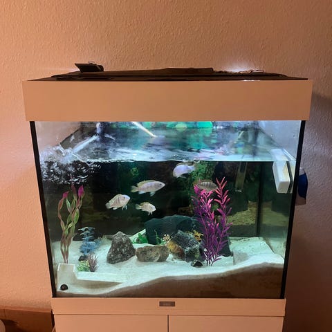 Juwel akvarie på 350 ltr. Der medfølger lys, pumpe og indholdet hvis det ønskes.
