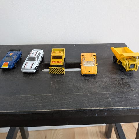 Sælger små modelbiler / legetøjsbiler samlet.