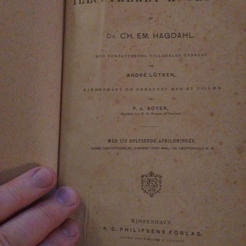Illustreret Kogebog af Dr. CH. EM. HAGDAHL. Med forfatterens tilladelse oversatt ved André Lütken. Gjennemset og forsynet med et tillæg ved P. J. Soyer, Mundkok hos H. M. Kongen af Danmark. Med 279 oplysende afbildninger, norsk ordfortegnelse, oversigt over maal- og vægtforhold m. m.