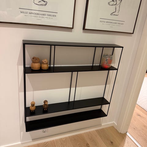 Sælger denne stilrene og minimalistiske vægreol fra Ilva af modellen SIMPLY. Reolen er udført i elegant sortlakeret metal med slanke linjer, der giver et let og moderne udtryk på væggen.