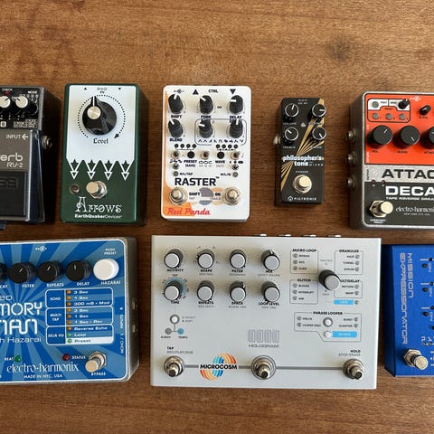 # Strymon, Keeley, Eventide, Chase Bliss, Meris, Line 6, JHS, Boss,, Cioks, Walrus Audio, Jackson Audio, GFI System, Temple Audio, Pedaltrain, Tc Electronic Mission Engineering, Free The Tone, Wampler, UAFX, Benson amps,