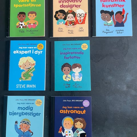 Pr stk. Sæt med 10 børnebøger i papbogsformat. Bøgerne har farverige forsider med illustrationer af børn og korte tekster, egnet til højtlæsning og tidlig læsning. Formatet er små, solide papbøger, som er velegnede til mindre børn. Flere forskellige titler og farver indgår i sættet, som kan bruges til oplæsning, samtale og introduktion til hverdagssituationer for børn.
