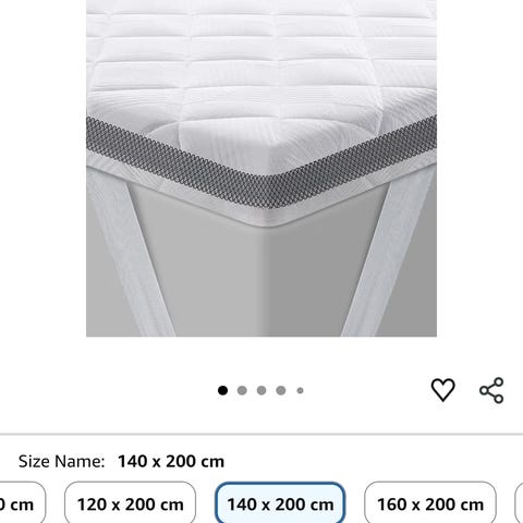 Skum Topmadras en fin stand. Størrelse 140 x 200cm. Den er cirka 4cm tyk. Passer bedste til nogen der kan lide en lidt hårdere madras — vi har købt en lidt blødere en.
