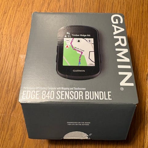 Garmin Edge 840 cykelcomputer med GPS i sort. Enheden har farvedisplay med touchfunktion og understøtter dansk sprog. Modellen er egnet til brug på cykel og leveres med diverse monteringsbeslag og remme som vist på billederne. Velegnet til navigation, registrering af ture og træningsdata på landevejscykel eller mountainbike.