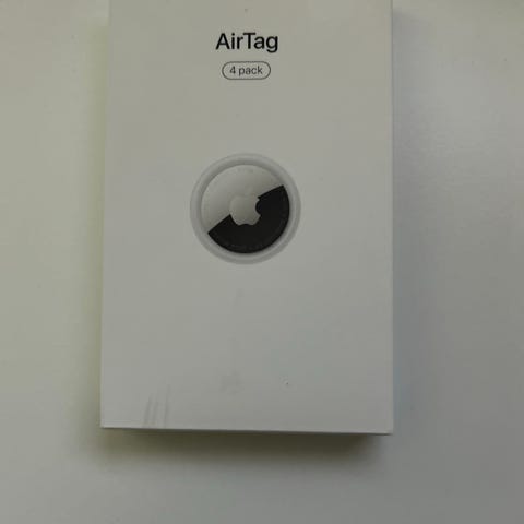 Apple AirTag sporingsenhed i hvid. Rund Bluetooth-baseret tracker, der kan bruges til at spore og lokalisere personlige ejendele som nøgler, tasker eller andre genstande via kompatible Apple-enheder. Enheden er kompakt og let og kan placeres i eller fastgøres til forskellige genstande. Understøtter Apples Find-netværk til lokalisering. Er helt ny og stadig i emballage
