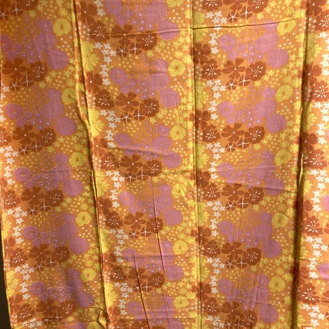 Blomstret tekstil (dynebetræk) metervare med mønster i lilla, rosa, hvid og mørkeblå nuancer. Stoffet har tæt placerede blomster og blade i forskellige størrelser, som giver et markant og dekorativt udtryk. Egnet til syning af boligtekstiler som puder, gardiner eller duge samt kreative syprojekter, hvor et farverigt blomstermønster ønskes.
