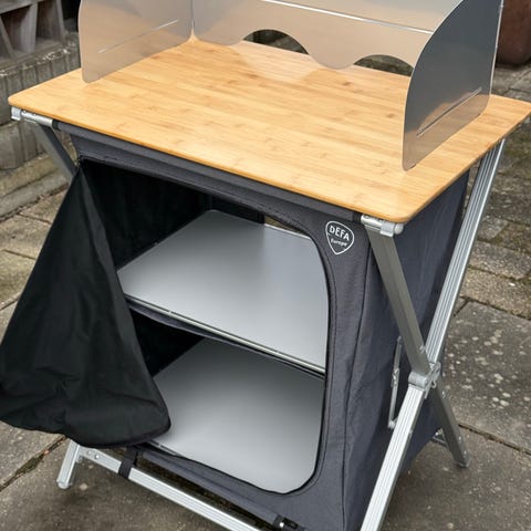 Bo-Camp Troutman skab med skuffer med 6 rum. Skabet kan opstilles på forskellige måder og har 3 skuffer. Vægten er 3,9 kg. Mål pr. rum er ca. 31 x 36 x 39 cm, og det kan foldes kompakt til ca. 40 x 32 x 15 cm. Velegnet til opbevaring, f.eks. i campingvogn, telt eller mindre rum.