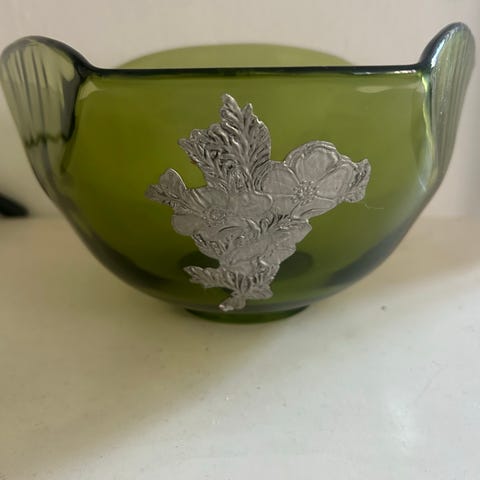TAG: vintage glas, iriserende glas, carnival glass, mid century, mid century modern, retro bolig, design bolig, statement piece, kunstglas, presset glas, farvespil, dekorativ skål, boligindretning, Frederiksberg stil, eksklusiv indretning, unika look, glas kunst, retro design, samlerglas