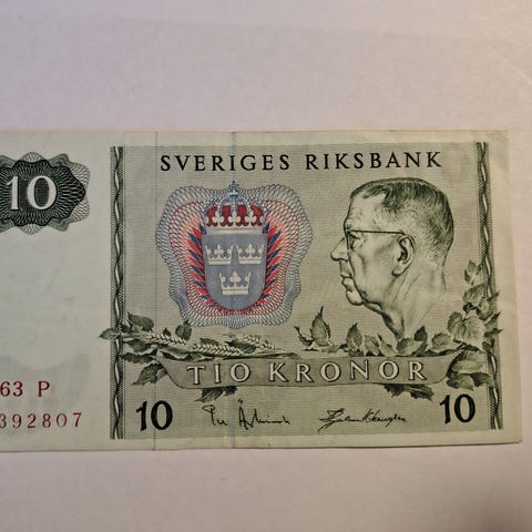 Dette er en svensk 10-kroners seddel fra 1968, der forestiller Kong Gustaf VI Adolf.
