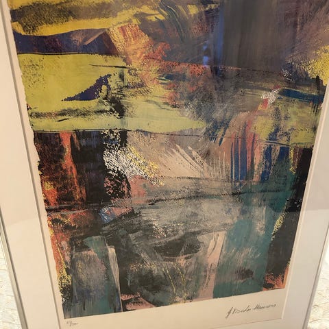 Krista Rosenkilde grafisk tryk med geometrisk motiv i flere farver på lys grøn baggrund. Værket er signeret og dateret 2010 i nederste kant. Trykket er indrammet i en enkel ramme med glas. Motivets komposition består af sammenflettede, kubiske former med mønstrede flader i brune, gule og rosa nuancer. Egnet til ophæng i stue, kontor eller andre opholdsrum. Sælges for højeste bud.