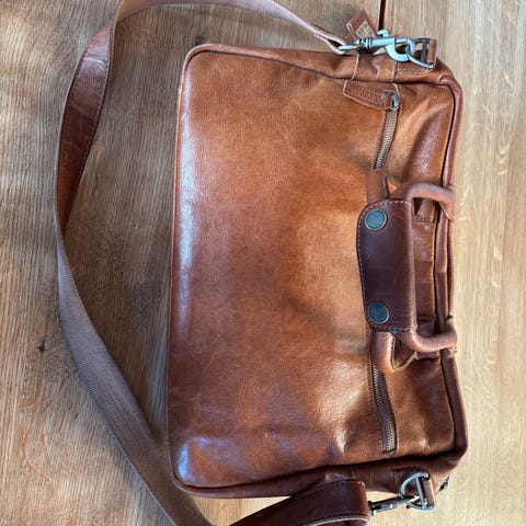 Lækker taske i flettet sort kernelæder fra Cowboysbag. Indstillelig rem og inderlomme med lynlås.