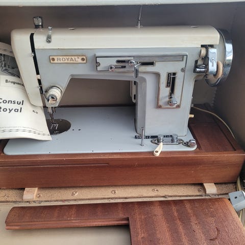 Diverse trykfødder og andre dele gives bort. Retro syvejledning medfølger. Delene hører formentlig til en Elna symaskine