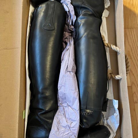 Mountain Horse ridestøvler i sort læder. Klassiske lange ridestøvler med lynlås bagpå og snøre foran ved foden. Leveres i original æske fra Mountain Horse, de er to størrelser da støvlen har udtagelig sål så den svarer til en str 39-40. Købt for 1700kr, er åben for realistiske bud.