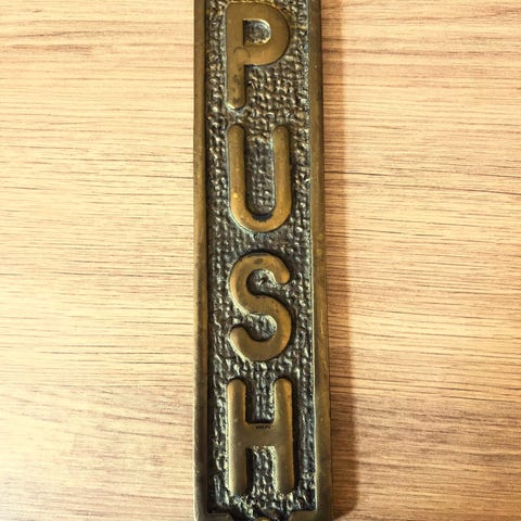 Smukt messing skilt inkl messing skruer i flot stand L14cm mp 250kr afhentes i 8570 Trustrup eller sendes for 45kr