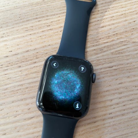 Apple Watch smartwatch med gråt sportsrem. Uret har rektangulær touchskærm og bagside med sensorer til måling af aktivitet og pulsrelaterede data. Remmen er i stoflignende materiale med justerbar lukning, egnet til daglig brug. Uret er designet til brug sammen med iPhone og kan vise beskeder, notifikationer og andre funktioner direkte på håndleddet.holder til en helt dag, er afinstalleret, derfor kendes batteri tilstand desværre ikke, fejler intet