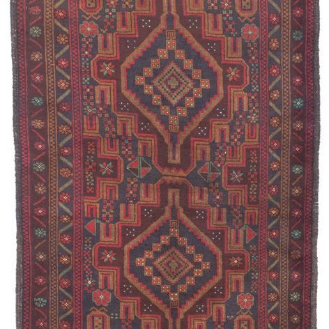 Flot håndknyttet tæppe i klassisk afghansk/Baluch stil sælges. Tæppet har et rustikt og autentisk udtryk med fine geometriske mønstre og varme, dybe farver.