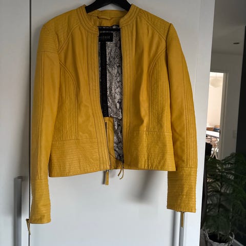 Meget lækker og blød jakke. Flot foer med giraffer. Man kan lyne ærmet op. Brystmål på jakken er 50 cm. Det vil svare til en str. 40-42. Jakken er faconsyet, så den går lidt ind i taljen.
