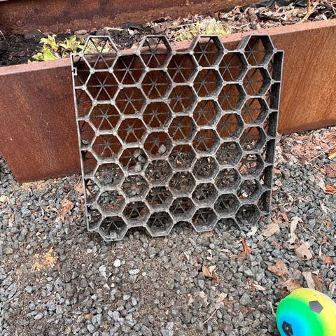 Ca. 2m3 Mørke granitskærver egnet til brug i indkørsel, gårdsplads eller som dækmateriale i haven. Stenene har en ujævn, knust struktur og kan anvendes til at skabe et fast og drænende underlag. Velegnet til områder omkring hus og bede, hvor der ønskes et stabilt og relativt vedligeholdelseslet underlag.