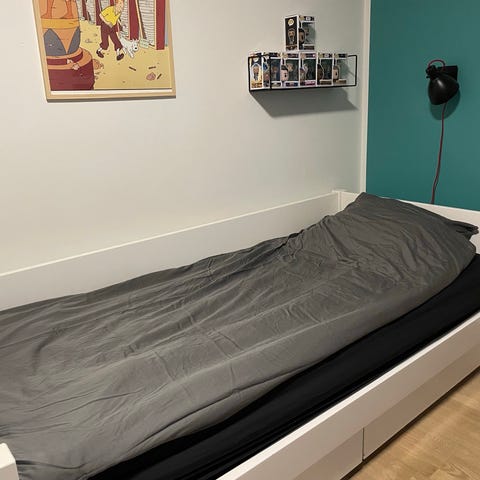 Er en solid seng, med brugsspor og deraf den billige pris.