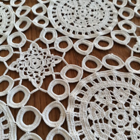 Vintage hæklet dug/tæppe 135x135
