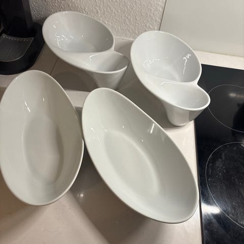 &Tradition skåle med mønster i forskellige farver og dekorationer. Skålene har runde former og grafiske mønstre indvendigt, velegnet til servering af fx snacks, tilbehør eller mindre retter i køkken og på bordet. For 4 .