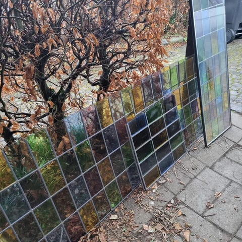 Blyindfattede forsatsvinduer med farvet glas