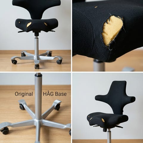 Sort HÅG Capisco kontorstol, model 8106, med gråt stel og hårde hjul. Stolen er anvendt i et meget begrænset omfang og er derfor i rigtig god stand.