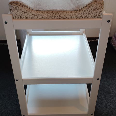 Bemærk, at puslebordet har slitage og at skufferne ikke kører ‘gnidningsfrit’ i skinnen. De kan dog bruges men ikke som nyt.