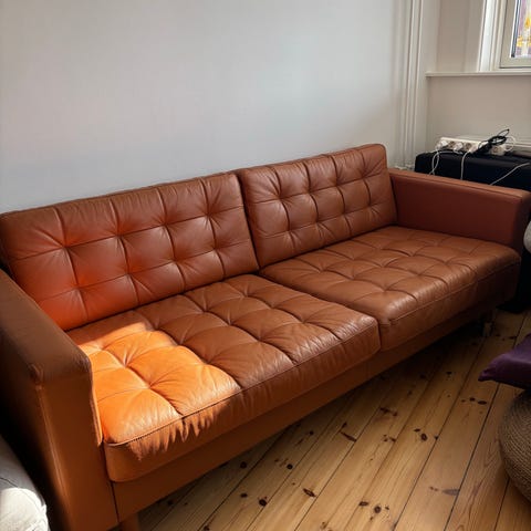 Corner sofa with light wood legs. 8 months old, limited use. Can be collected from Sydhaven from 3 April (apartment has an elevator)
