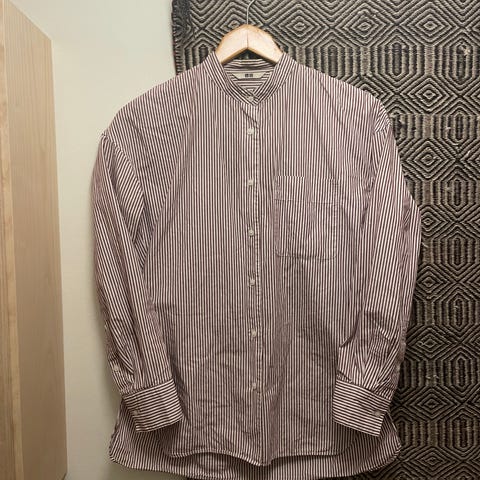 Uniqlo skjorte til kvinder i størrelse L. Skjorten er hvid i bomuld med små trykte gule blomster og diskrete striber. Klassisk krave og knaplukning foran. Ærmerne er korte og løstsiddende. Materiale: 100 % bomuld. Velegnet til hverdagsbrug eller afslappede anledninger.
