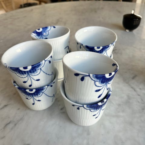 Royal Copenhagen termokrus hvid blå porcelæn