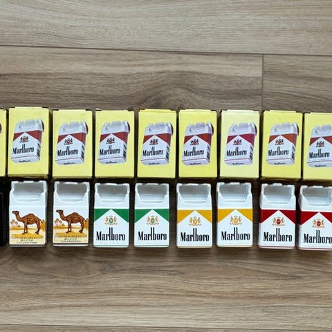 Retro Porcelæns Askebæger fra Marlboro. 100% som nyt uden skår, revner eller ridser. Har samme størrelse som en pakke cigaretter.
