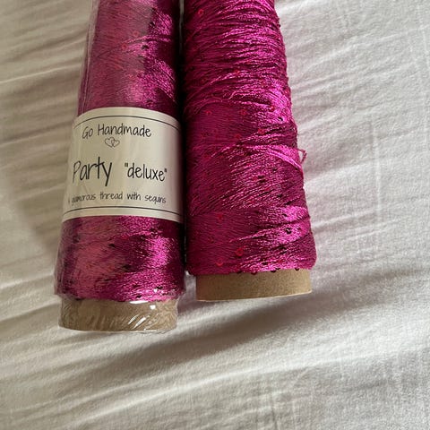 GB Ballkönigin garn i flere farver. Nøglerne er i akryl og polyester med glimmertråd. Farverne omfatter grøn, blå og mørkeblå. Garnet egner sig til strik og hækling af f.eks. tilbehør, beklædning og pynteprojekter, hvor der ønskes en glitrende overflade. Materialesammensætning og vaskeanvisninger fremgår af banderolen på hvert nøgle.